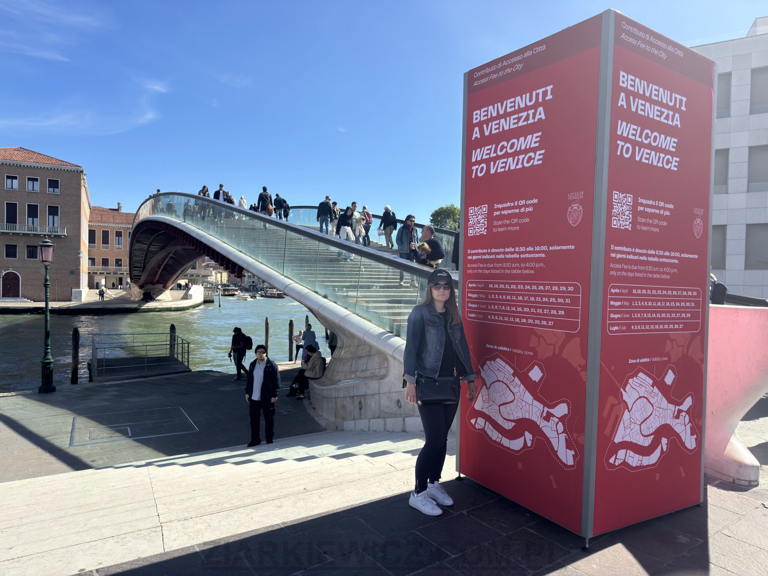 Wejściem prowadzącym od parkingu Tronchetto, na którym zostawiliśmy auto jest najmłodszy z czterech mostów na Canal Grande – Ponte della Costituzione.