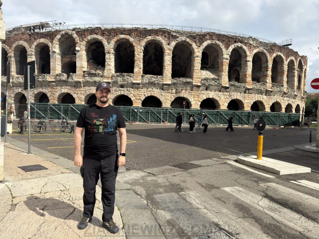 Pierwszym zabytkiem po przybyciu do Werony był tamtejszy amfiteatr. Amfiteatr w Weronie (wł. Arena di Verona) należy do największych symboli tego miasta. Budowla stoi przy jednym z najbardziej ruchliwych miejskich placów, Piazza Bra, i wciąż jest w użyciu, choć na jej arenie zamiast walk gladiatorów organizowane są koncerty oraz występy operowe. Powstał on w pierwszej połowie I wieku i mógł być wzorem dla wzniesionego później rzymskiego Koloseum.