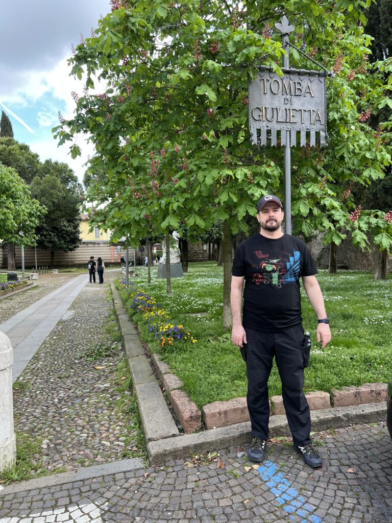 Spacerując po Weronie, trafiliśmy też na rzeźbę Romea i Julii – jak widać bez szału 🙂