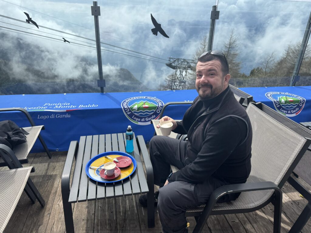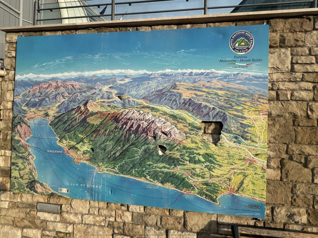 Kolejną z atrakcji jest Monte Baldo – majestatyczny masyw górski (najwyższy szczyt Valdritta 2218 m n.p.m.) w Alpach Wschodnich, górujący nad wschodnim brzegiem Jeziora Garda. Znany jako „Ogród Europy” dzięki bogatej florze, oferuje spektakularne widoki, liczne szlaki trekkingowe, rowerowe oraz paralotniowe. Główną atrakcją jest kolejka linowa z Malcesine z obrotowymi kabinami, na którą nie omieszkaliśmy się wybrać 🙂